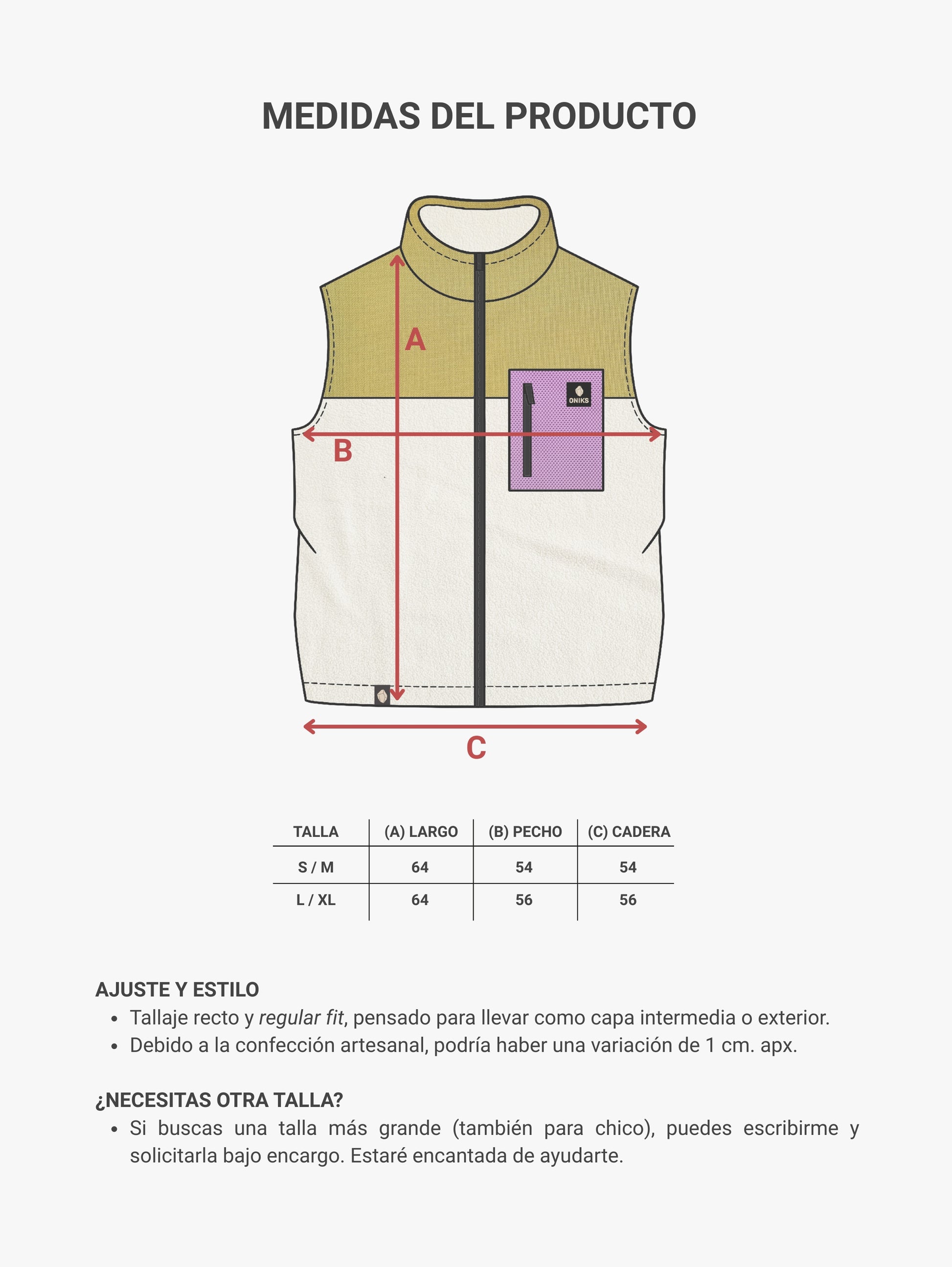 - S/M : 54 cm. ancho x 64 cm. alto