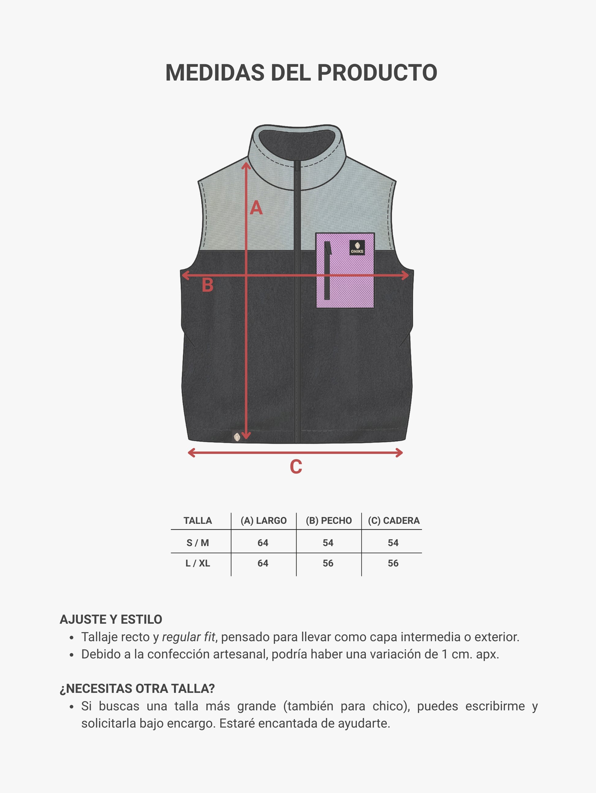 - S/M : 54 cm. ancho x 64 cm. alto